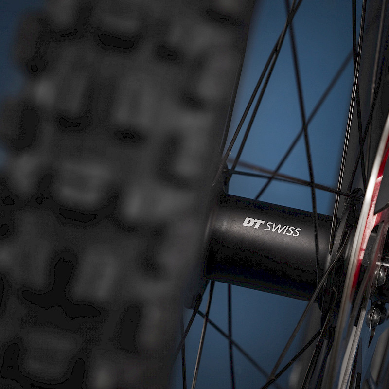 Neu gestaltete Gummi-Protektoren an Kettenstrebe, Unterrohr und Tretlager reduzieren die Geräuschentwicklung und schützen den Rahmen vor Stößen und Schmutzpartikeln. Der zusätzliche Unterrohrschutz verhindert Schäden durch den Sessellift oder beim Einladen in den Van.