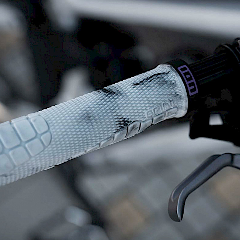 Optisch greift die Limited Edition die progressive Designsprache von ION auf: Schwarz-grau-weiß meliert, kombiniert mit einer lilafarbenen Klemmschelle. Die Farbgebung verbindet die beiden Produkte zu einem abgestimmten MTB-Cockpit und unterstreicht die gemeinsame Handschrift der zwei Marken.